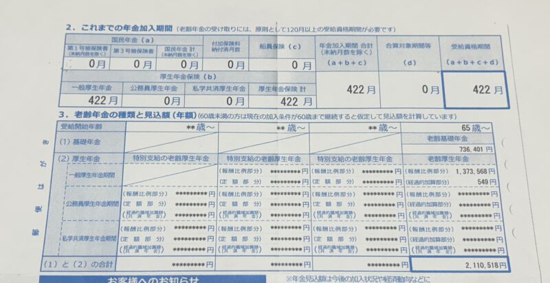 夫のねんきん定期便に書いてある