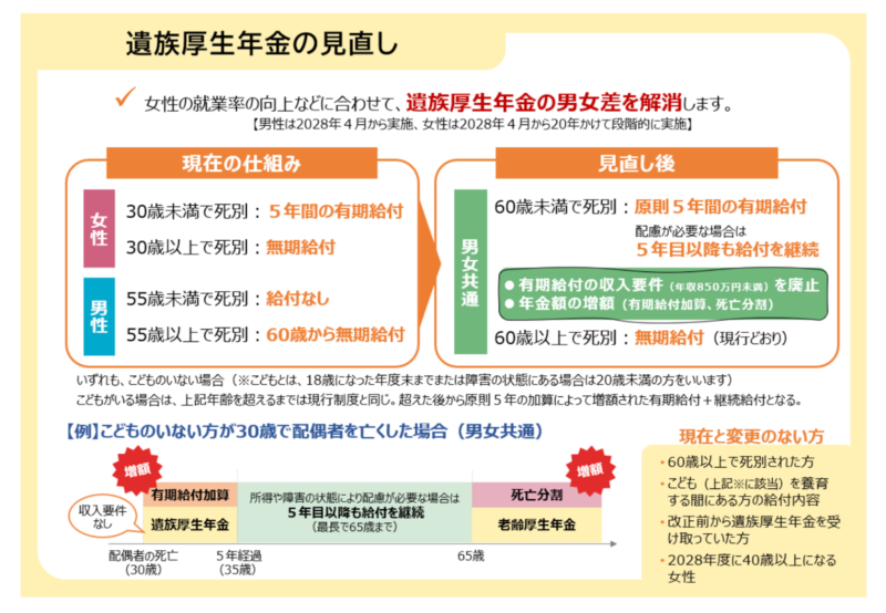 では、遺族厚生年金がどのように見直されるのか、説明します。